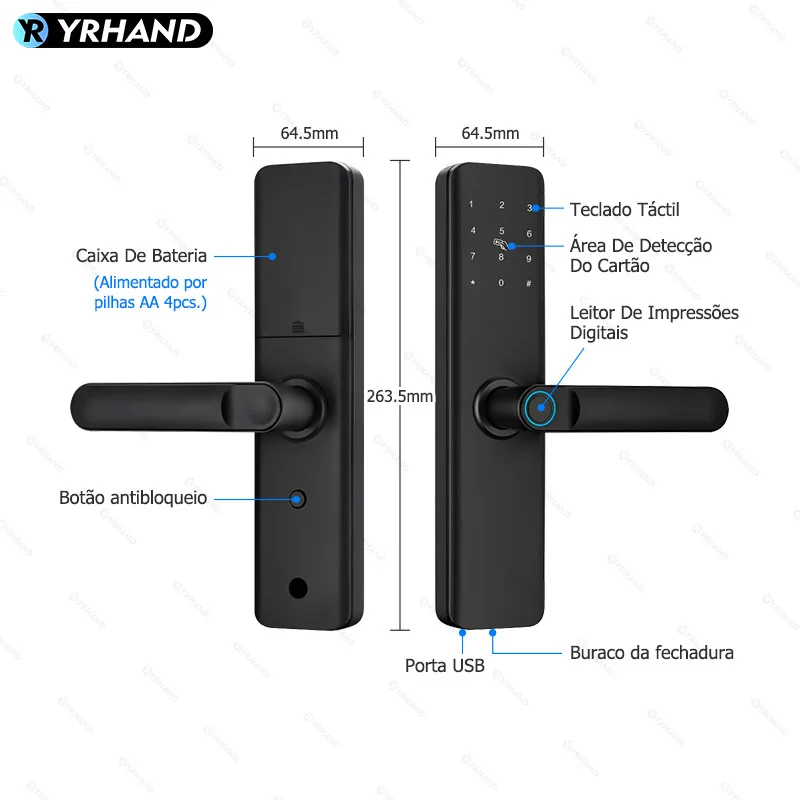 Fechadura inteligente para porta, brasil, tuya, voz portuguesa, fechadura eletrônica digital, wi-fi, aplicativo, senha de impressão digital, desbloqueio rfid para casa